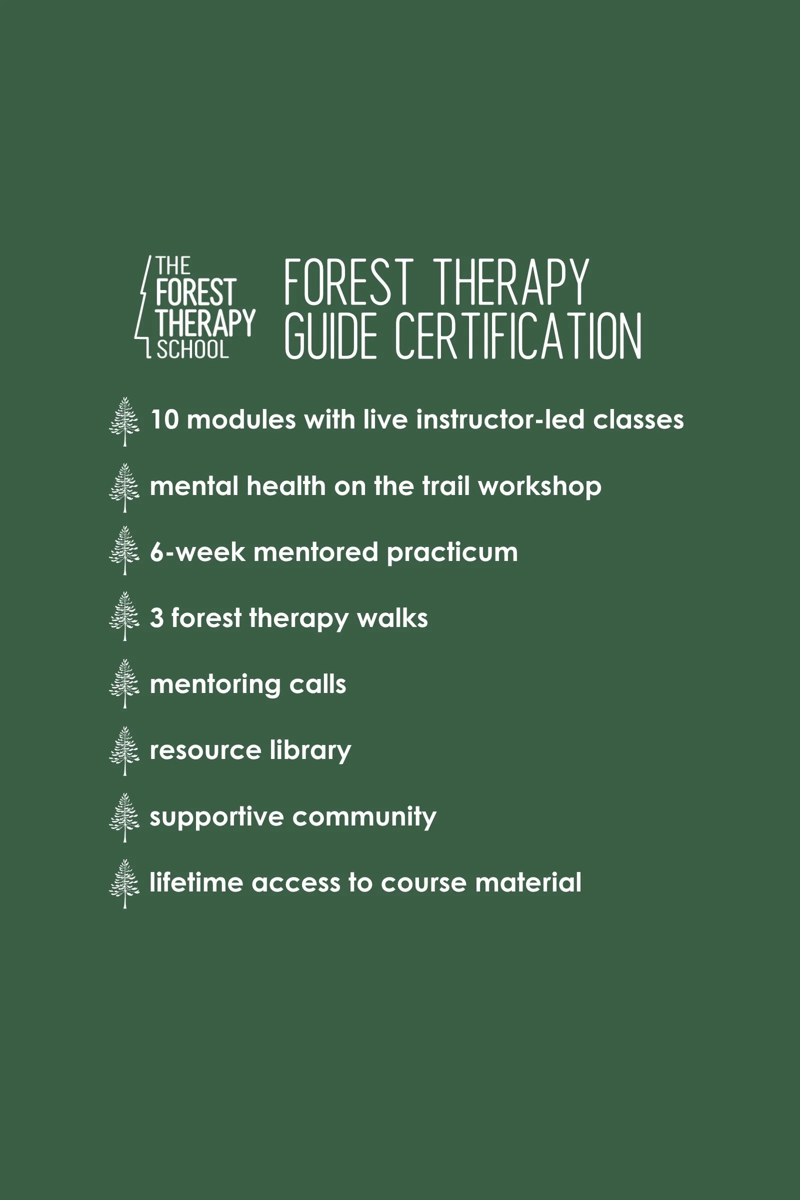 In addition, you will receive an invitation to join our virtual community of Certified Forest Therapy Guides where you can connect, be inspired, and receive ongoing support.